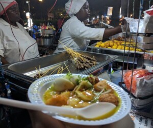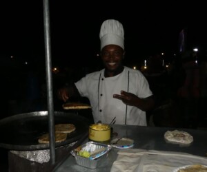 - Forodhani Gardens Food Market dinner including the foods described (Zanzibar pizza, urojo, shawarma, spice tea or coffee)
